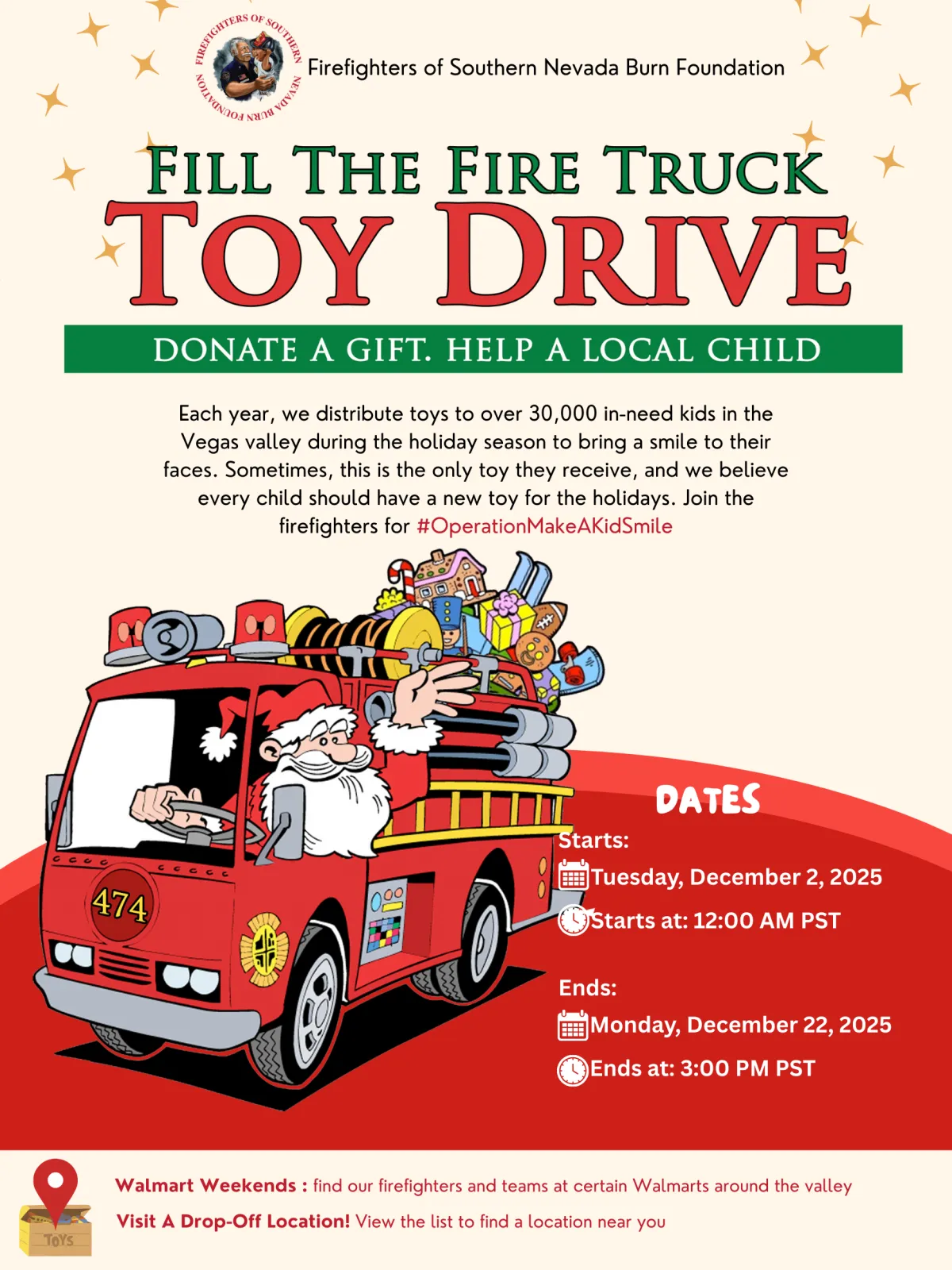 Through fundraising efforts, they help local children attend burn camps, receive counseling, and participate in school reintegration programs, allowing them to heal both physically and emotionally. The Foundation also organizes annual holiday toy drives, bringing joy to thousands of children across Southern Nevada.